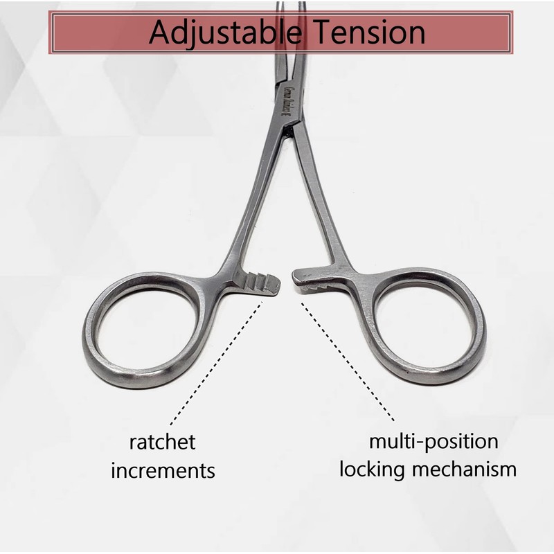 - ✅ MULTI POSITION LOCKING TOOL: Pliers-like tool with a three position locking ratchet providing adjustable tension and firm grip even when wet. The jaws of the locking forceps gradually come together as each increment of the ratchet is employed.