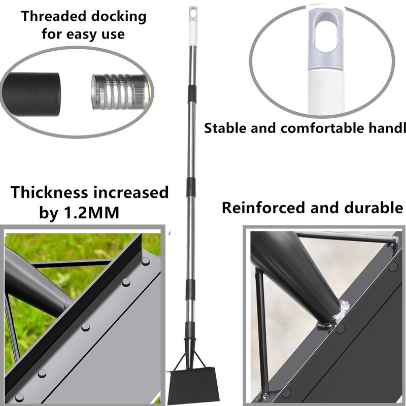 - Ergonomic and Adjustable Handle:Equipped with three adjustable sizes (28.7", 46.8", and 57.4"), this shovel is suitable for users of different heights and tasks. The ergonomic long handle provides a comfortable grip, reducing strain and fatigue during extended use.