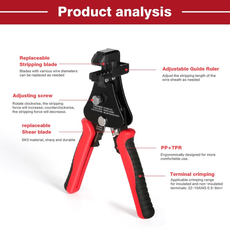 • Good quality: Made of high-quality materials, the wire strippers are durable and practical and have an ergonomic design that adapts perfectly to the shape of your handle. The soft, non-slip handle provides maximum comfort and reduces hand fatigue.