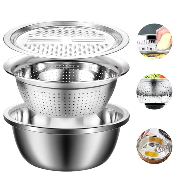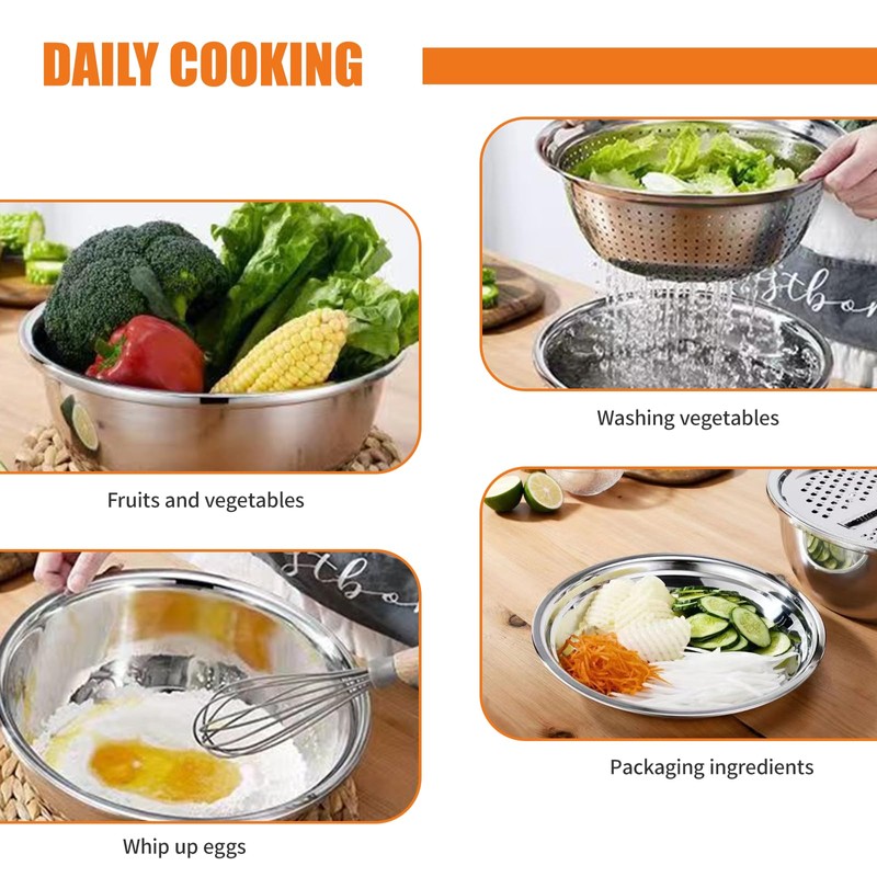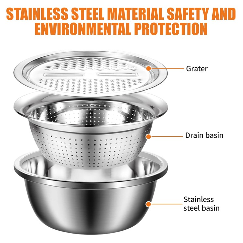• Multifunctional Stainless Steel Basin: Made of premium food-grade thick stainless steel, this basin grater is a must-have in the kitchen. It is sturdy, heat-resistant, acid-proof, and rust-proof, making it a reliable choice for your cooking adventures