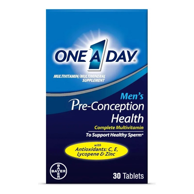 - Apoyo para la concepción. One A Day salud preconceptiva masculina es un multivitamínico completo especialmente diseñado para proporcionar apoyo nutricional mientras intenta concebir. Su fórmula contiene potentes antioxidantes que incluyen vitamina C, vitamina E, selenio, zinc y licopeno que apoyan al cuerpo para que produzca espermatozoides saludables. Recomendamos tomar este multivitamínico Pre
