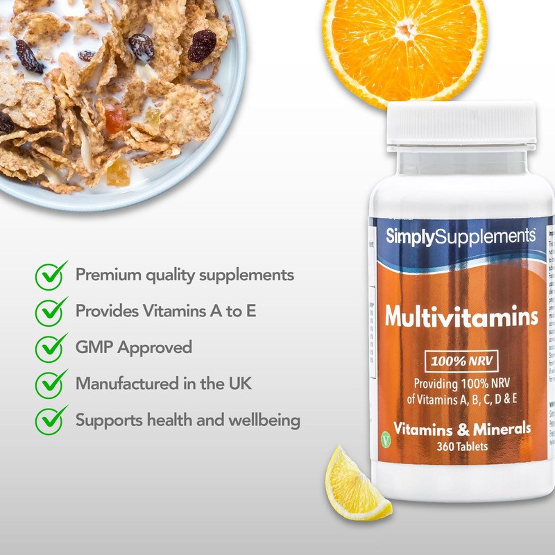 This high quality multivitamin product can provide you with all the essential nutrients you need. Simply Supplements multivitamin tablets provide a perfect foundation for any diet and contain 100% of the nutrient reference values (NRV) of vitamins A, B, C, D and E.