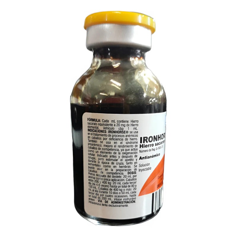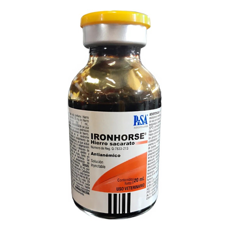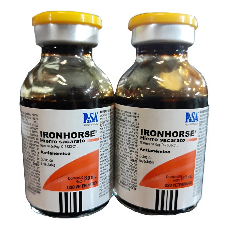 IRONHORSE es una solución inyectable elaborada a base de hierro sacarato, considerado como antianémica, de uso en equinos.