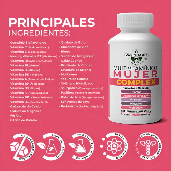 Multivitamínico Mujer Complex 120 Capletas De 900 Mg Pasiguaro