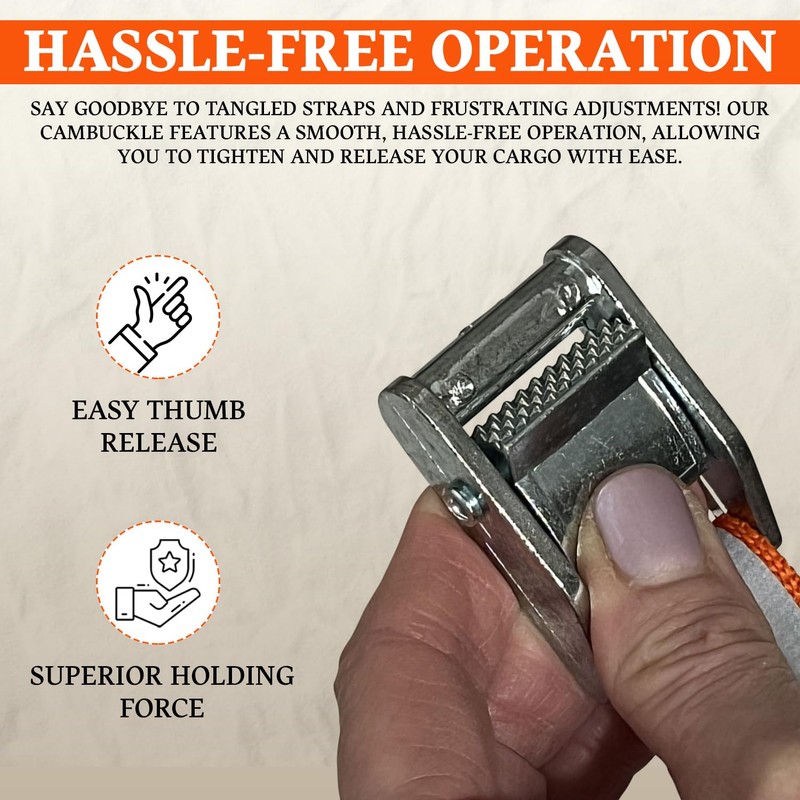 - Includes: 4 - Cam Buckles with 9 Foot Orange Reflective Polypropylene Straps | 4 - Orange Universal Utility Handles