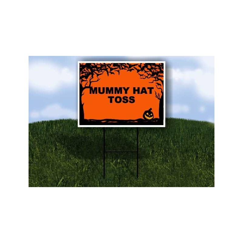 MUMMY HAT TOSS Halloween Bats and Jack O Lantern 1 Single Sided 18x24 in Yard Road Sign w/stand