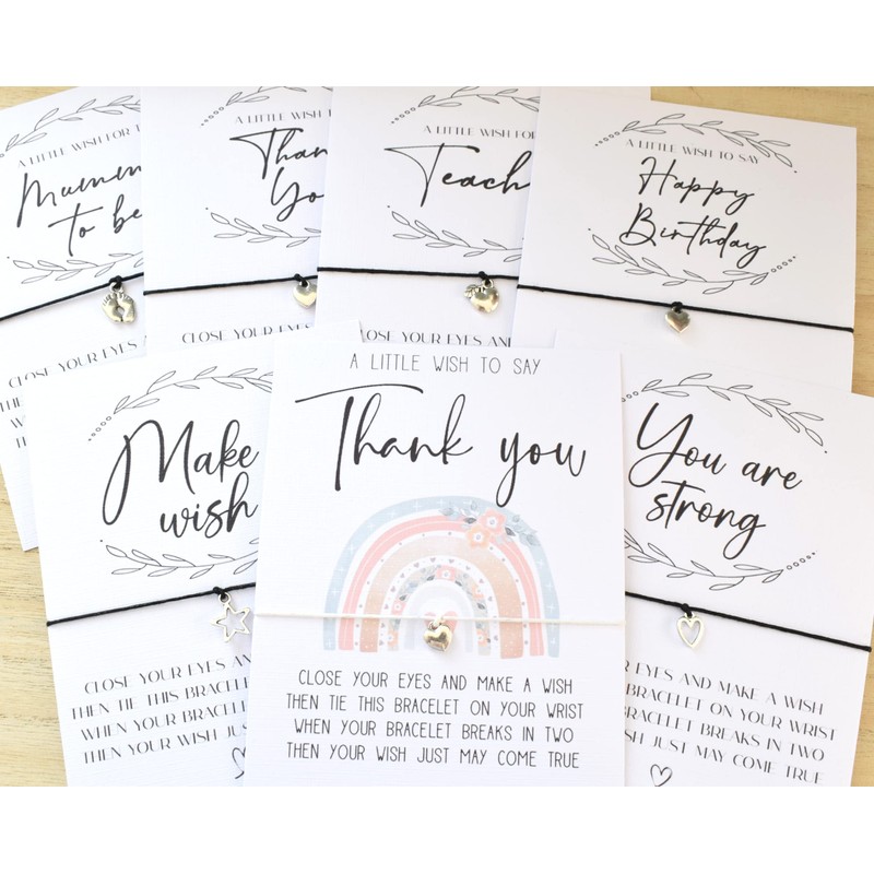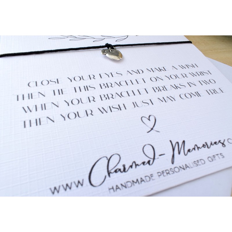 A wish bracelet is intended to be tied upon the wrist whilst making a wish and over time when the cord breaks away the idea is that wish will come true.