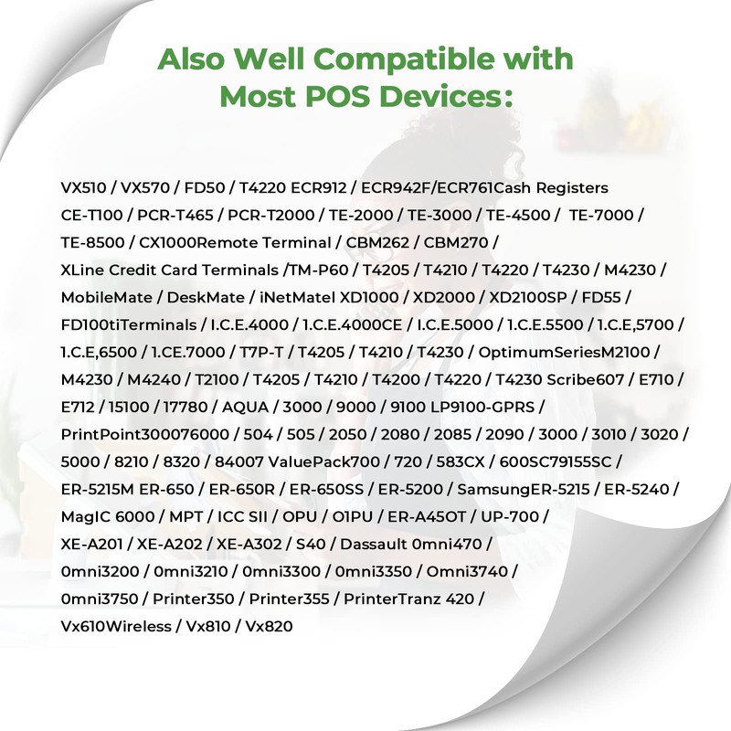 - [Universal Compatibility] Compatible with First Data FD50 FD55 FD130 T4220 T4230, Verifone VX510 VX570 VX610 VX810 VX820, Hypercom ICE Series T7P-T T4205/4210/4220/4230, Optimum Series M2100/4230/4240 T2100/4205/4210/4200, Casio CE-T100 PCR-T465 PCR-T2000 TE-2000/3000/4500/7000/8500 and more