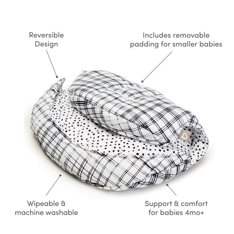 Munchkin Early Feeding Support Cushion for Float High Chair - Reversible, Machine Washable, Modern Design, Perfect for Starting Solids, Black/White