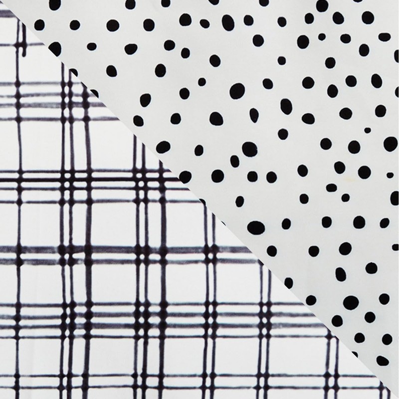 - Modern plaid on one side, chic dotted print on the other