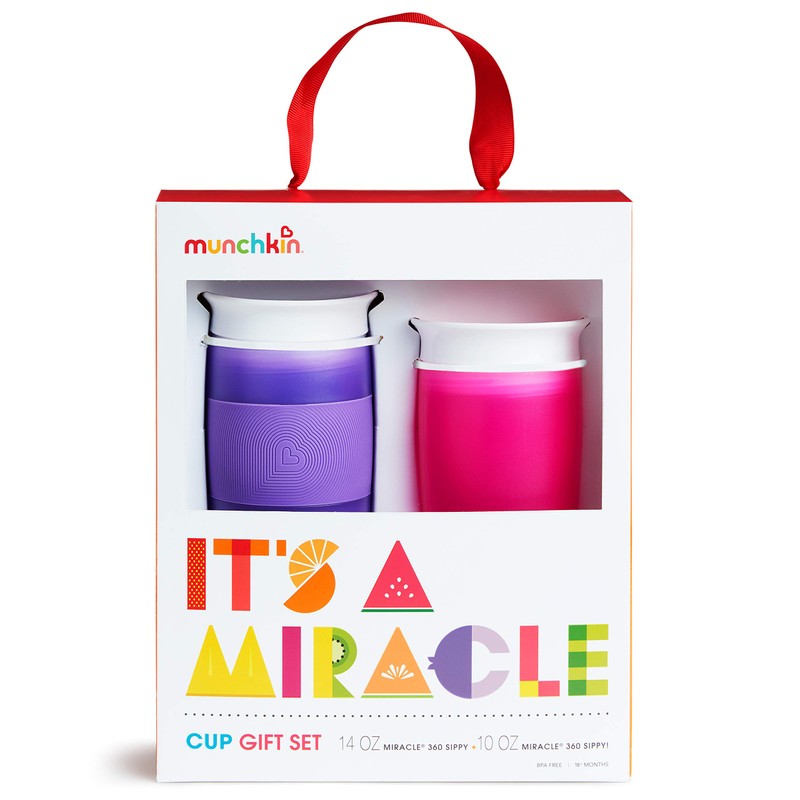 Munchkin It's a Miracle! Gift Set, Includes 10oz & 14oz Miracle 360 Cup, Pink/Purple