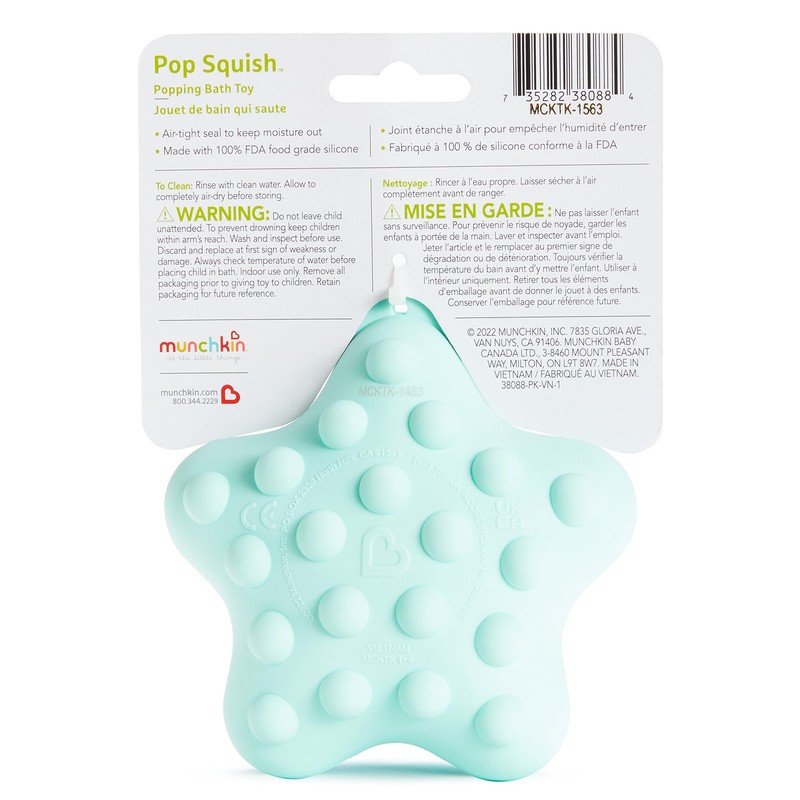 Munchkin® Pop Squish™ Popping Bath Toy - Mold-Free Squeezable Sensory Baby Fidget Toy Without Holes, Starfish