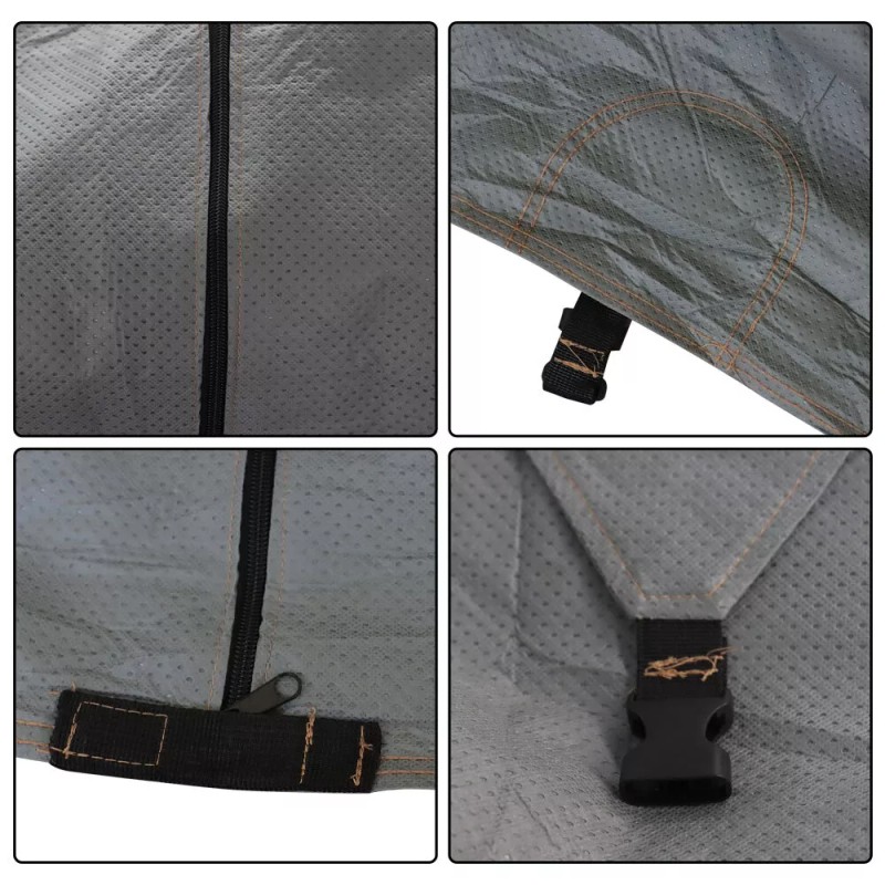 Newly developing Mixed Anti-UV Composite Fabric for top panel, extra-thick, extra strength, Rip-stop; White Composite Fabric up to 6 Layers and 3-Ply Side Non-Woven can provide maximum weather and damage protection against harmful UV, rain, snow, dirt, nicks, and scratches.