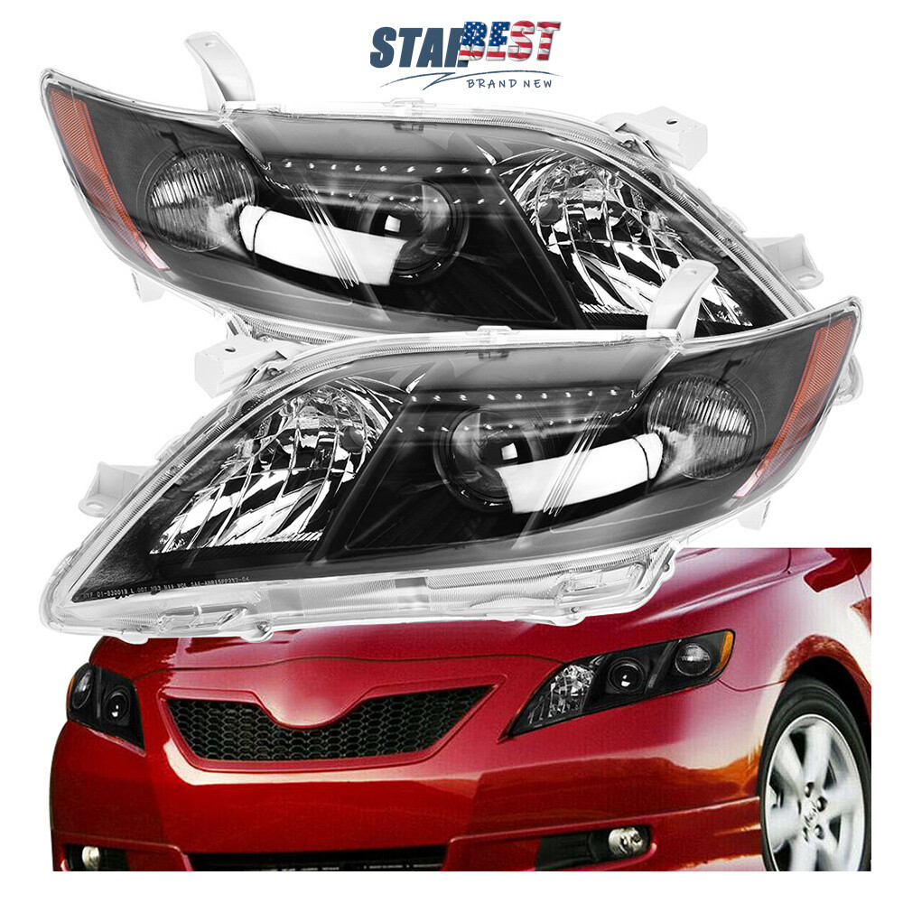 Item Type: Headlight Assembly OE Number:8113033652/ 8113033662 Condition: New Warranty: 1 Year To Fit: For Toyota Camry 2007-2009 Lighting Technology:Halogen Housing Color:Black Lens Color:Clear Quantity Sold: 1 Pair (Left+Right Side) Headlight Placement on Vehicle: Front,Left,Right Material: Plastic