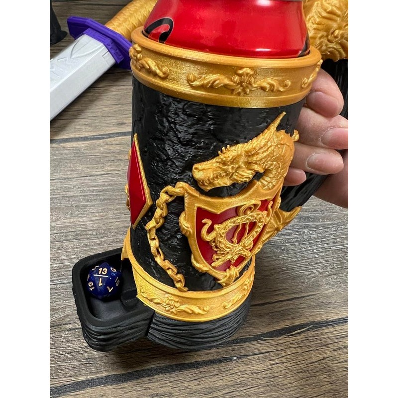 MunnyGrubbers - Dragon Mug Dice Tower with Tray - No Paint Odorless Insulated Cup Can Dice Tower - (Random 7PCS D20 Dice Set Included) - Dungeons and Dragons - DND Gift - (Black/Gold/Red)