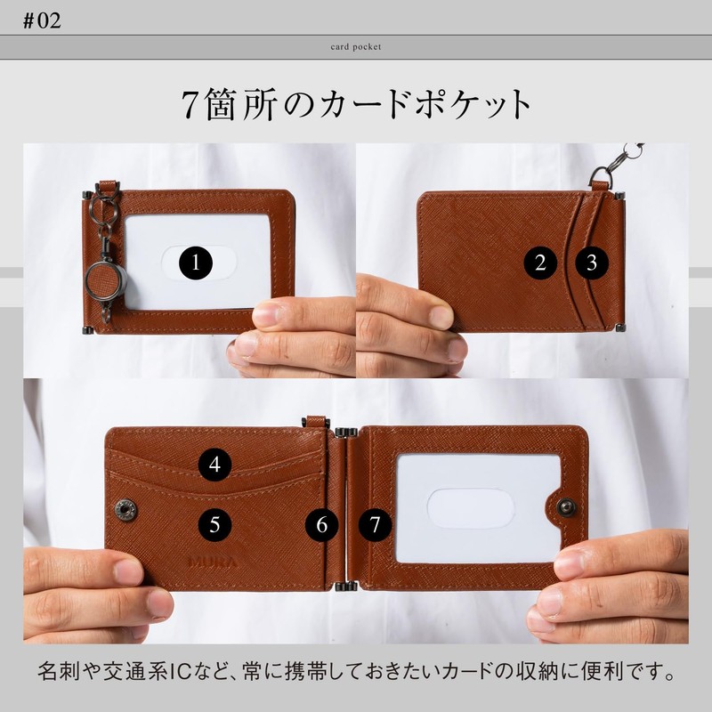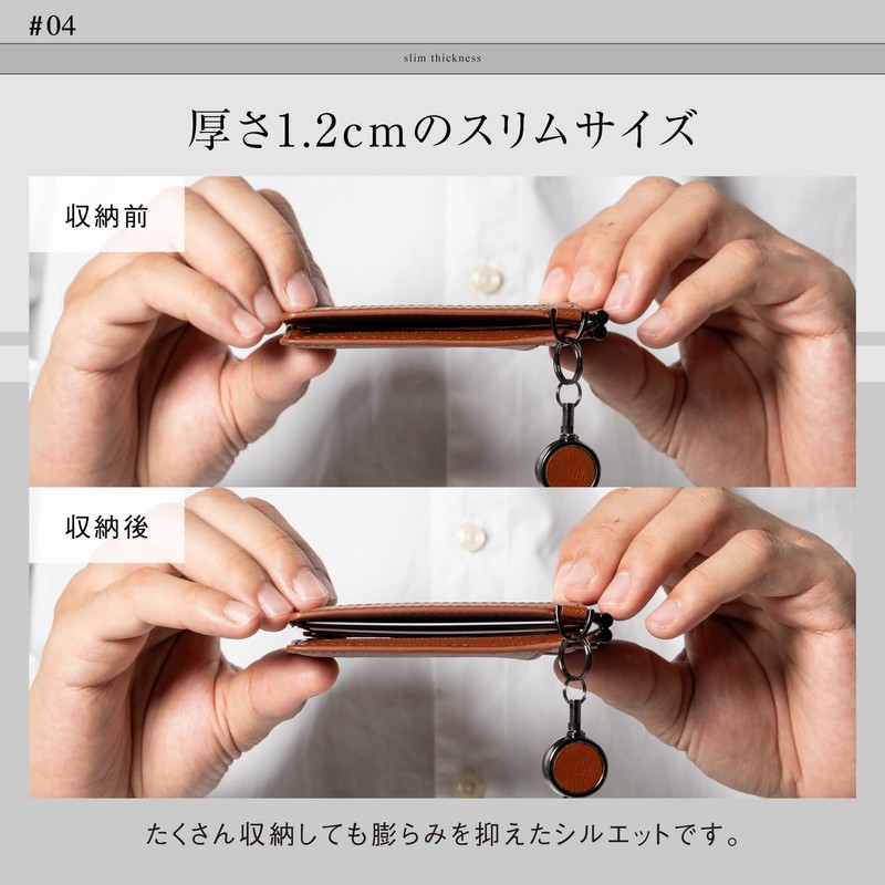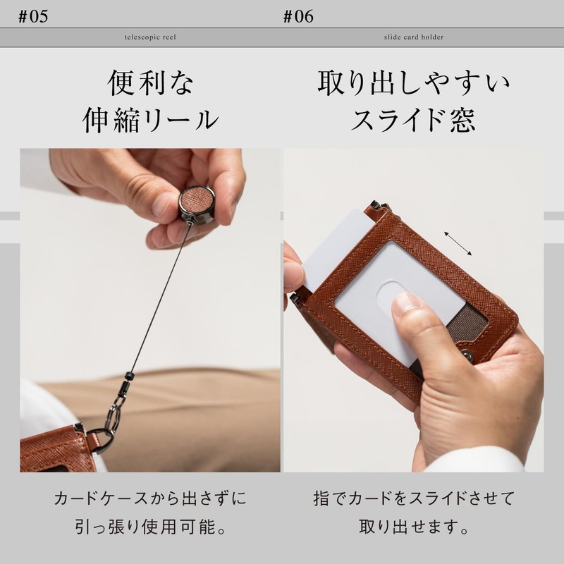 - (An excellent card case made of luxurious Saffiano leather with an elastic reel and excellent storage capacity) This card case uses saffiano leather that is resistant to scratches, water, and dirt. Comes with an elastic reel, so it is easy to touch just by pulling it out. It has clear window pockets and card pockets for excellent storage and functionality