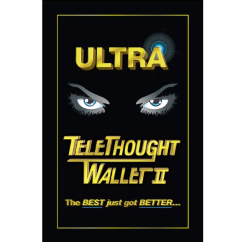 A spectator is invited to think of ANY word, symbol, picture, number, etc. He/she writes it on a card. It is inserted into a sleek black wallet face down. Now without any moves, electronics, impression devices, flaps, etc., the performer gleans every one of the spectator's thoughts every time... guaranteed! Remember, without ANY moves at all, one hundred percent of the spectator's information is delivered secretly, ingeniously, and imperceptibly to the performer. With Telethought Wallet II the gimmick is now completely indetectable, incredibly designed and now inside the wallet! Truly the Best has gotten Better! (Don't be left standing on the wrong side of the velvet ropes)!
