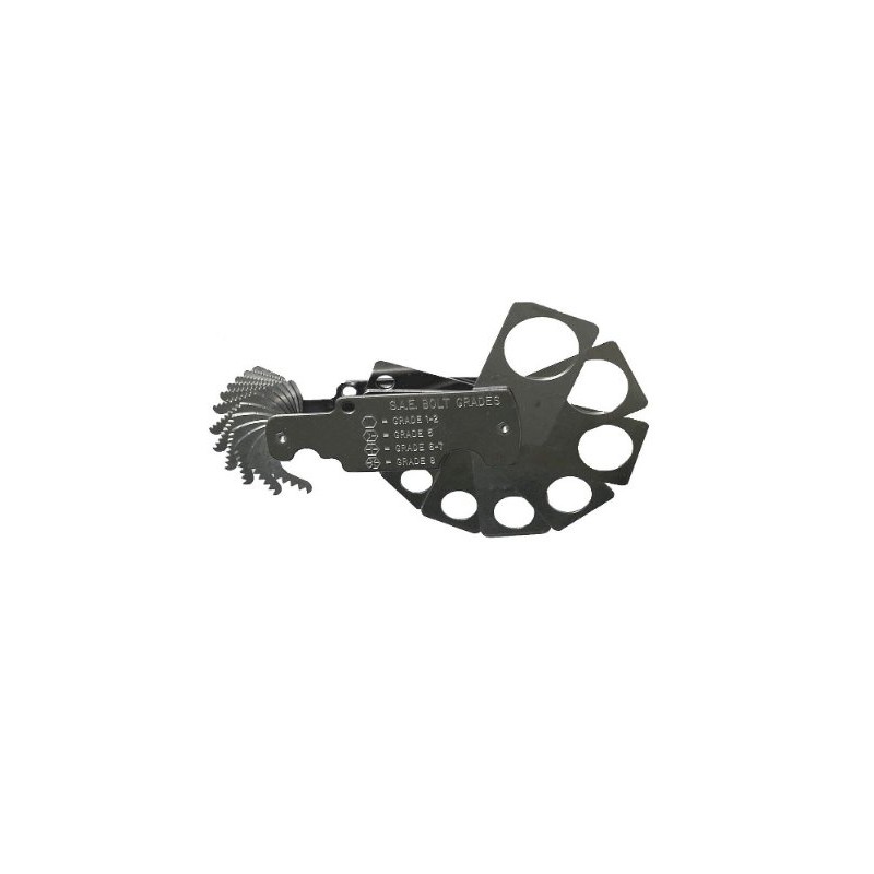 It will accurately measure the thread pitch on your bolts and its slim blade design will also indicate the thread pitch on nuts as small as 5mm. The bolt sizer blades are machine stamped with both the bolt diameter and the correct wrench size needed for installation. In addition, the back panel has a clearly marked bolt grade chart, a useful aid in identifying the correct bolt hardness, a valuable feature when trying to match materials in the field.
