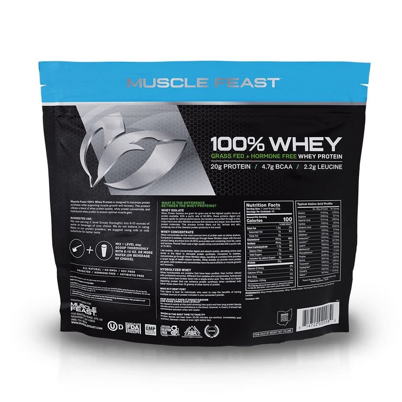 Muscle Feast 100% Grass-Fed Whey Protein, Pastured Raised Hormone Free All Natural, Unflavored, 5lb