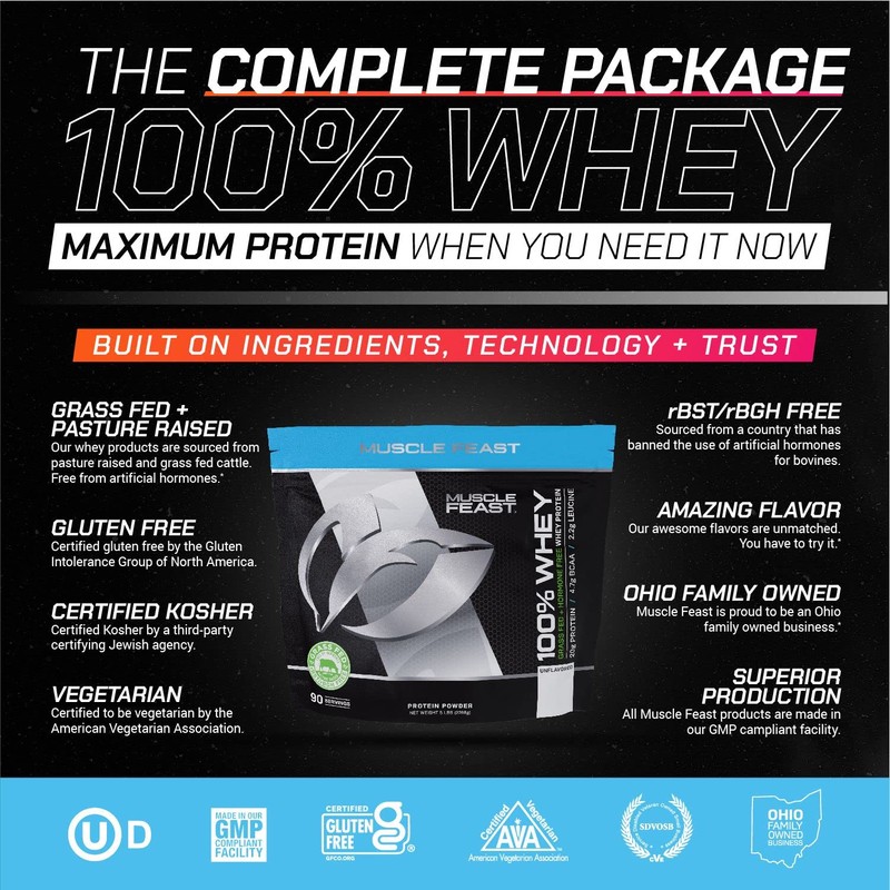 - COMPLETE WHEY PROTEIN SOURCE: pasture raised, grass-fed whey protein powder contains a blend of whey concentrate, whey isolate and hydrolyzed whey (90 Servings)