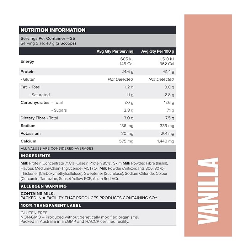 Muscle Nation Vanilla Custard Casein Protein Powder 1 kg (25 Serves)