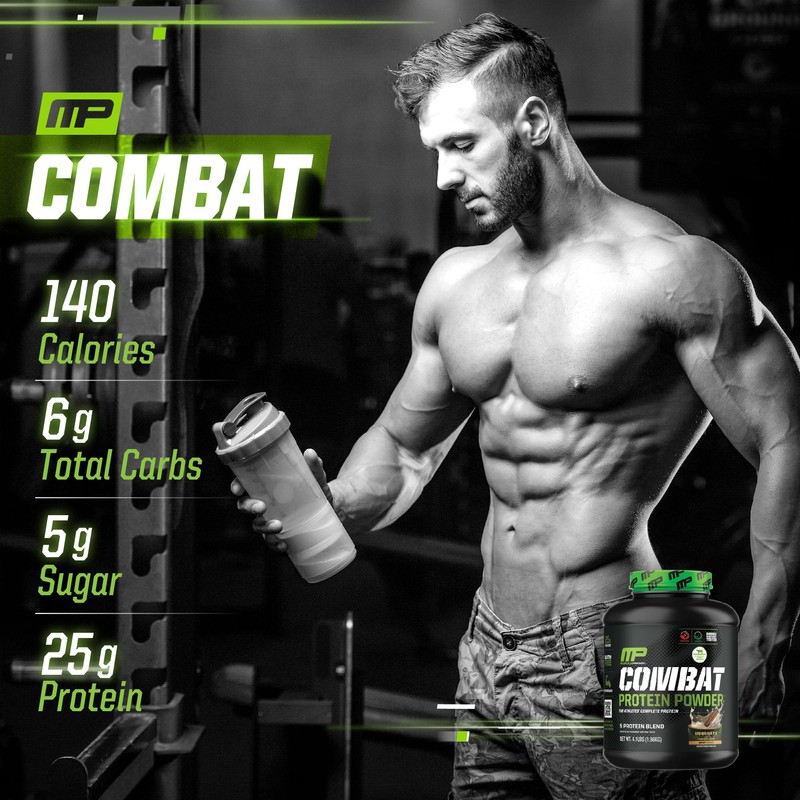 - Fuel Muscles, Yields Results: MusclePharm Combat Protein Powder was created for athletes who train hard and demand more from their body. Combat Protein Powder offers 25 grams of protein per serving.