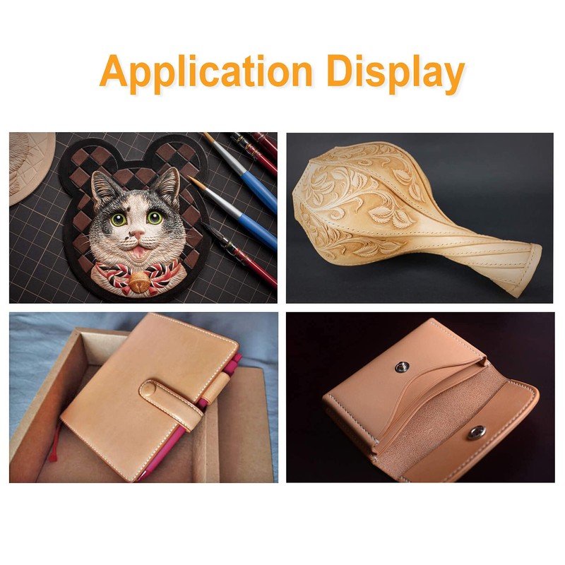 - đAPPLICATIONS:The leather hide can be used in all leather craft projects, such as carving, dyeing, embossing, holster, blade, stamping, handbag, wallet, holster, shoes, insoles, hats, belts, belts, iphones shells, ipad covers, and other leather craft projects.Great for Arts, Crafts, Tooling, Stamping, Sewing, Carving Properties, Hobby Workshop.