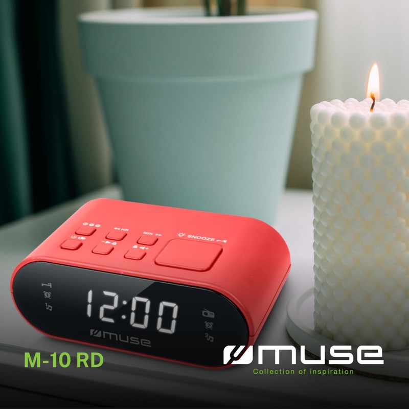 MUSE M-10 RD Radio Alarm Clock with LED Display, Two Alarm Times, Dimmable, Digital FM Tuner, 20 Stations Memory