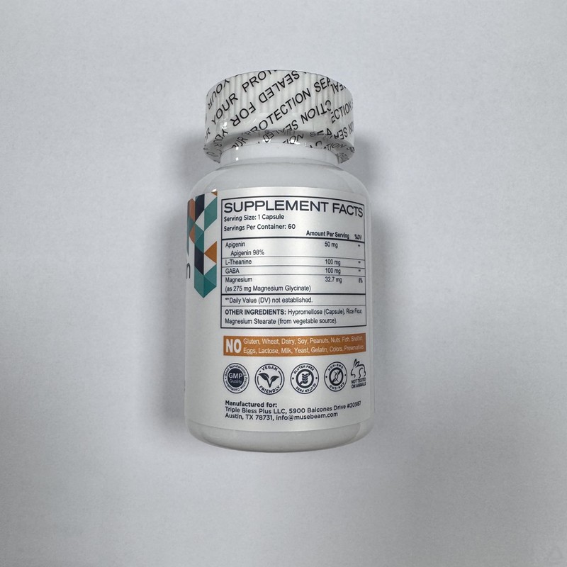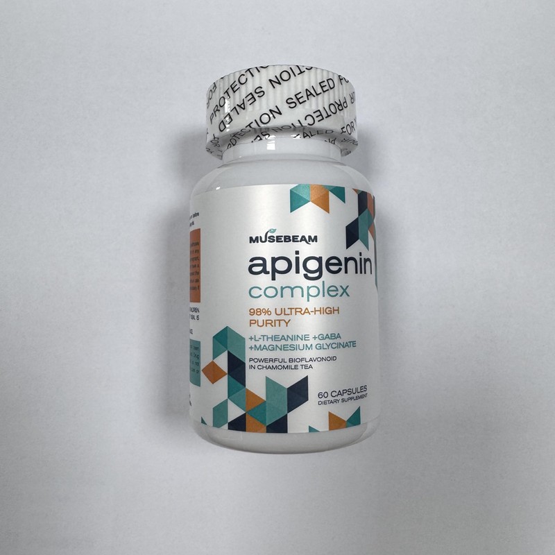 musebeam Apigenin Supplement for Rest and Relaxation Support - 50mg Apigenin per Capsule with Magnesium Glycinate 275mg L-Theanine 100mg GABA 100mg - 98% Ultra-High Purity - Melatonin Alternative