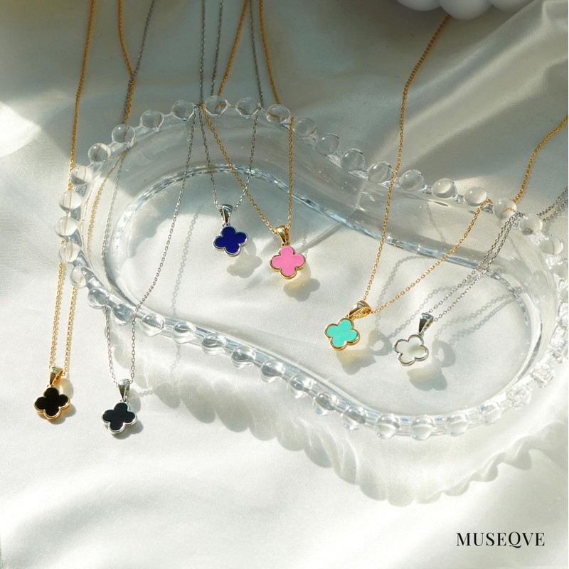 - The dainty clover pendant is made from mother of pearl. Each charm is carefully handpicked for its exceptional quality. You can choose pendant from various color of white, black, blue, pink, and mint green. It looks perfect with every outfit, express your unique style !