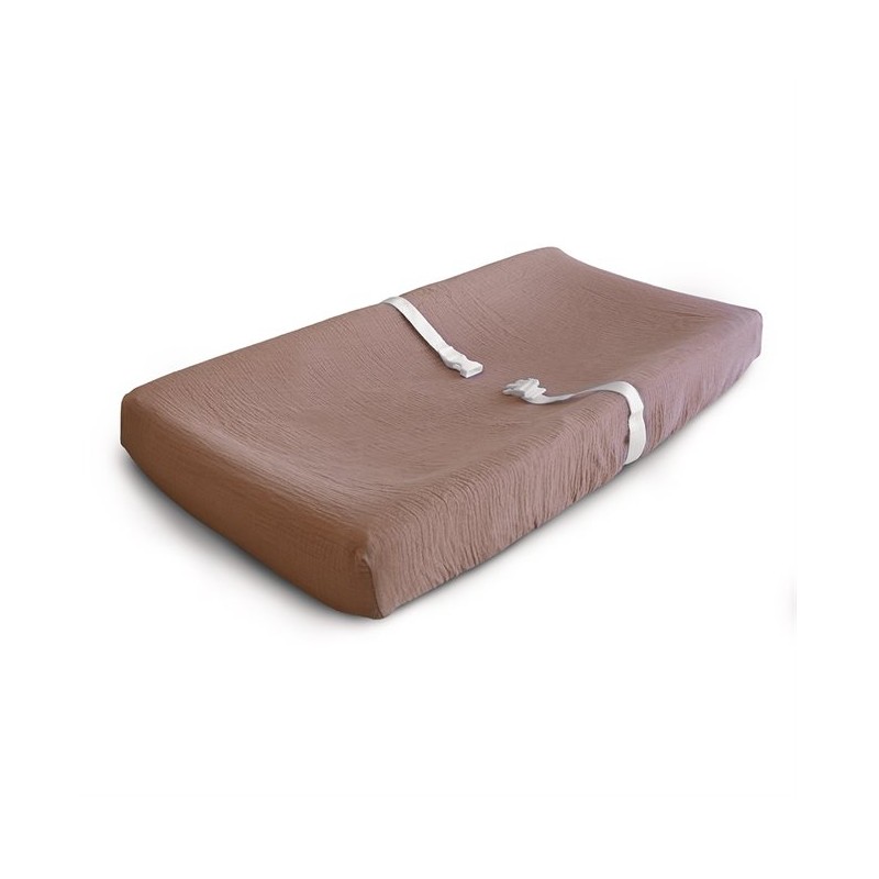 Changing pad cover in elegant design made from 100% cotton. The extra-soft changing pad cover is pre-washed for softness against baby's sensitive skin. The muslin-cotton material stays breathable while keeping your baby warm and cozy.
