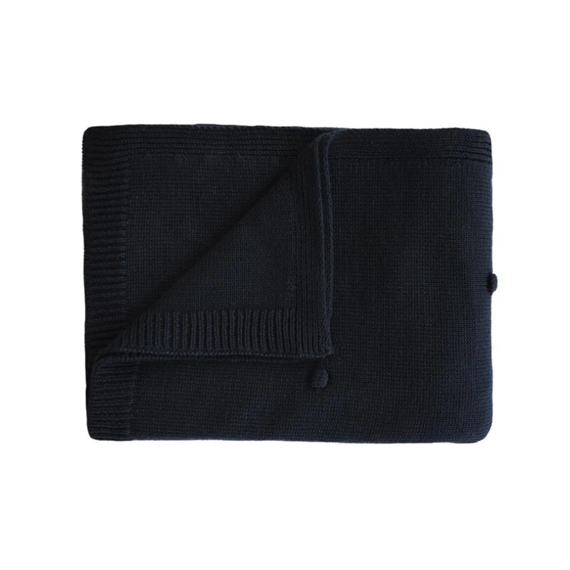 Mushie Knitted Baby Blanket Textured Dots Dark Navy