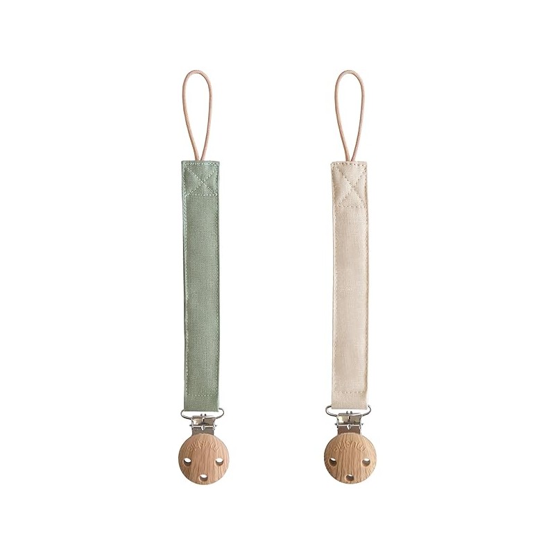 mushie Linen Baby Pacifier Clip Holder | Soft Fabric Strap, 2-Pack (Olive/Shifting Sand)