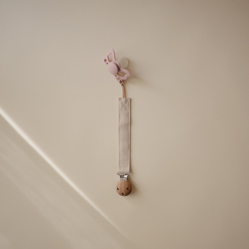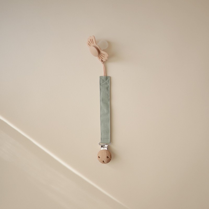 mushie Linen Baby Pacifier Clip Holder | Soft Fabric Strap, 2-Pack (Olive/Shifting Sand)