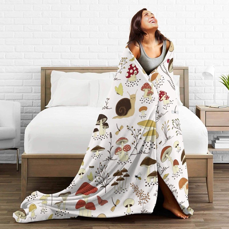 Mushroom Blanket, Cute Soft Warm Cartoon Bed Bedding Throw Blankets for Couch Bedroom Sofa Office, All Season Cozy Flannel Plush Blanket Gifts for Girls Boys Kids Adults, 50"X40"