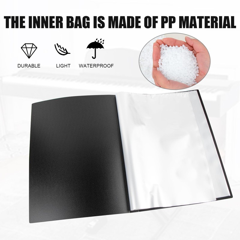 - High-quality material: the outer layer of the music folder is made of black hard shell material, very wear-resistant. The inner pocket is made of high quality PP material, which is lightweight, durable and waterproof.