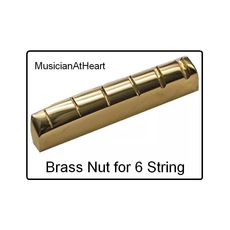 Have you ever wondered what metal the Liberty Bell is made of? What material any "real" bell is made of? Usually BRASS. And why is that material used? Because it "rings"! Because its perfect for converting mechanical energy into acoustic energy. That's why many professional guitarists use brass guitar nuts. It has a noticeable improvement on sustain and tone. A huge improvement over the cheap stock plastic nuts supplied with most guitars.