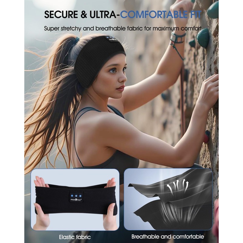 - 【Immersive Hi-Fi Sleep Soundscape】MUSICOZY Sleep Headphones Headband is engineered for sleep therapy, our bluetooth sleep headband headphones deliver studio-grade audio with balanced bass/treble (<40ms latency) - perfect for sleep assistance. The ultra-thin sleep headphones headband provides 3D surround sound with noise isolation, while built-in mic enables pillow-soft calls. Your lullabies never sounded richer in this comfort-optimized headband headphone system