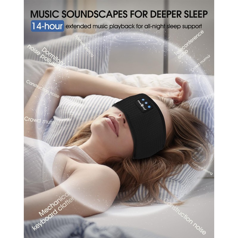 - 【Comfort Revolution With MUSICOZY Sleep Headphones】MUSICOZY Bluetooth Sleep Headphones deliver cloud-like comfort for side sleepers, with ultra-thin, flat speakers that feel weightless all night. Designed to enjoy music without bulky earbuds, they let you drift off to music without pressing into your ears—perfect for couples sharing a bed. Enjoy 14hr battery life, instant Bluetooth pairing, and 24-month worry-free warranty. The no-pressure, no-wires sleep solution you’ve dreamed of