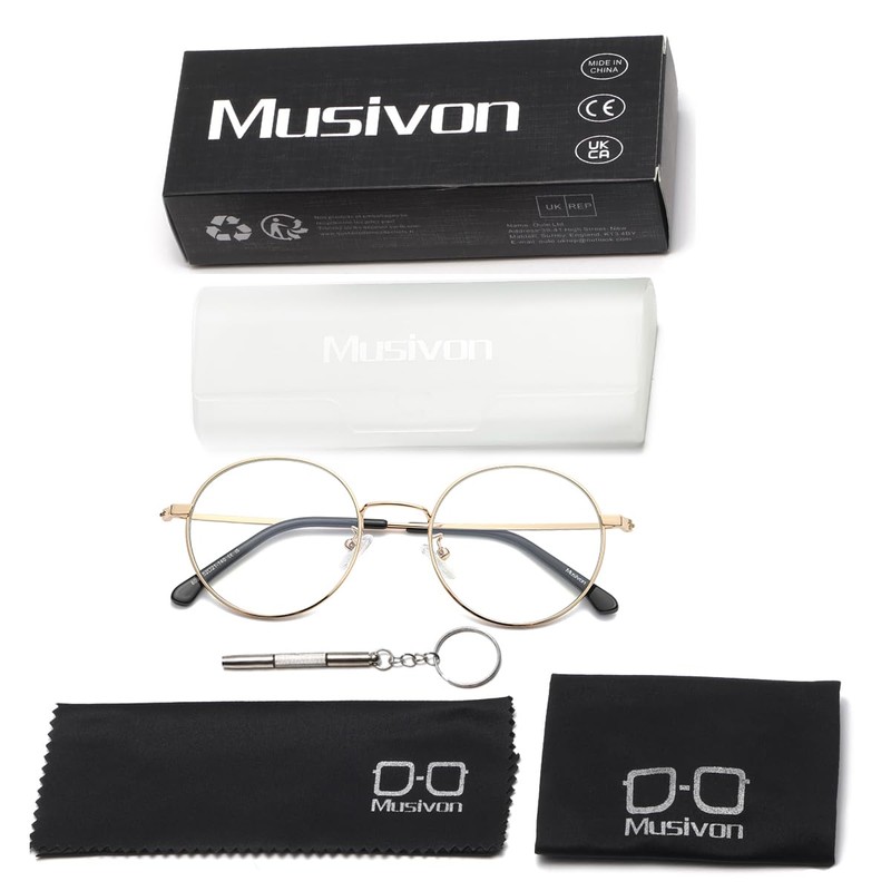 Musivon Blue Light Filter Glasses Women Men – Blue Filter Computer Glasses Without Prescription Metal Frame Round, gold