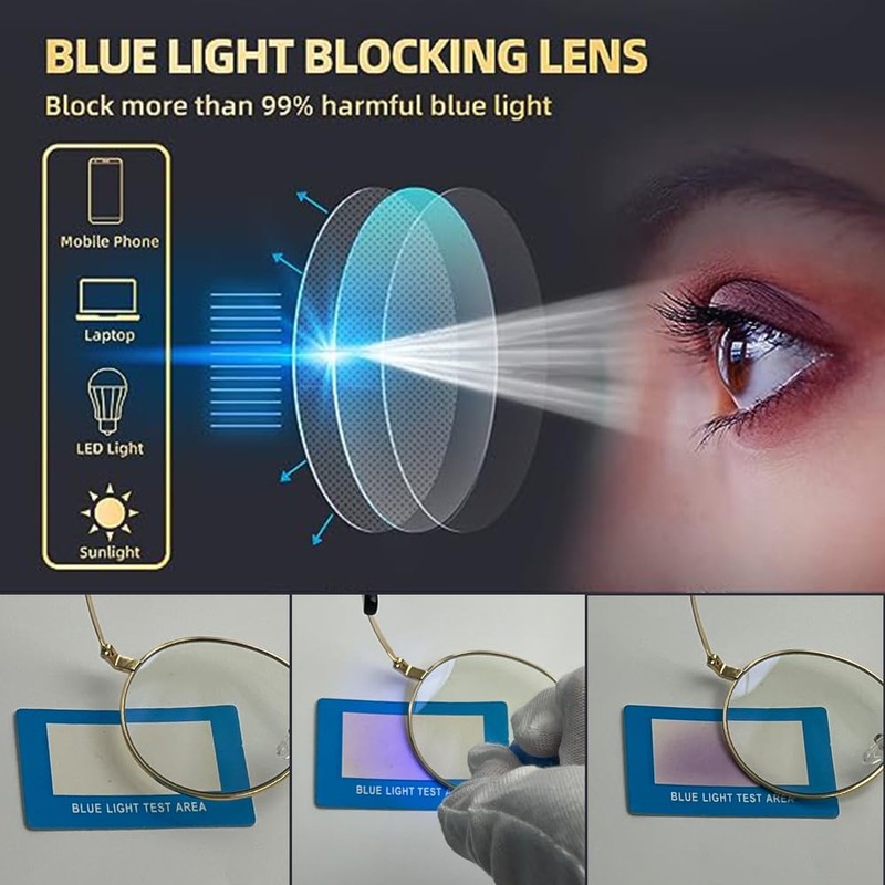 Anti-blue light glass - The lenses are equipped with AR anti-reflection technology. They improve the anti-glare function and block harmful blue light from electronic devices.
