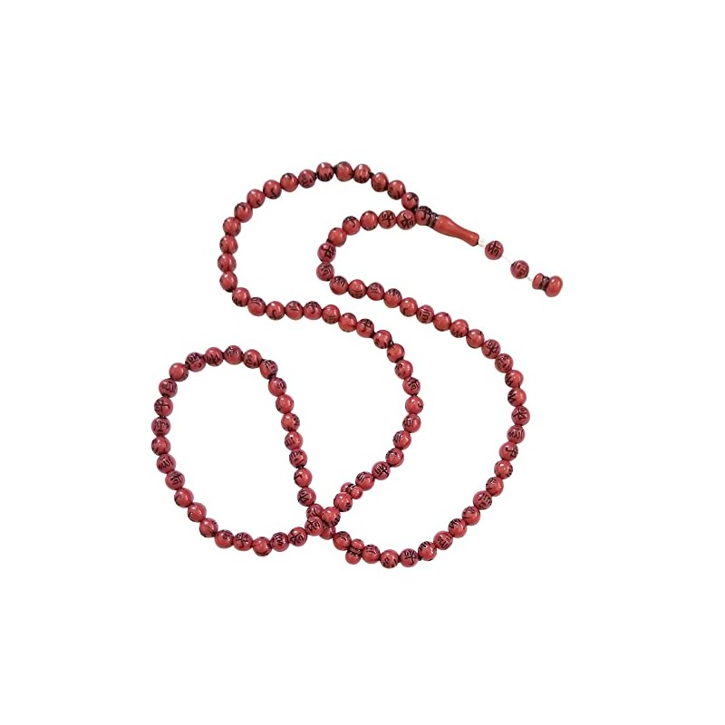 MUSLIM PRAYER BEADS - Engraving on Each 7-mm Bead 26-inch Simple Dark Red Black Plastic 99ct Sibha Misbaha Subha for Dhikr and Salawat