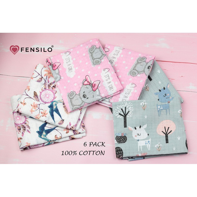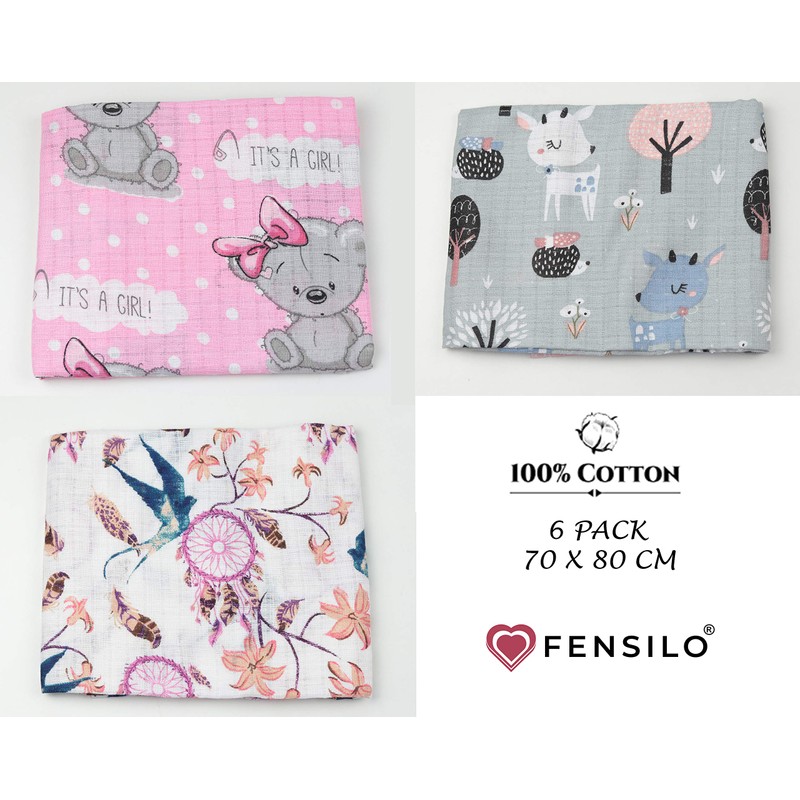 Muslin Cloths - Muslin Nappies - Pack of 6, 70 x 80 cm - Baby Burp Cloths