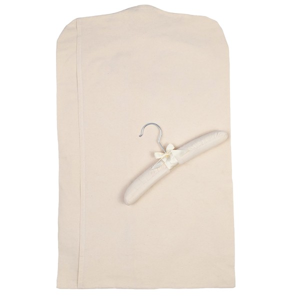 Each Bag is made of 100% unbleached, acid-free muslin which allows fabric to breathe while protecting the Christening or other special occasion set from dust, dirt, light and chemical contamination. Wide overlapped closure for full protection (no oil from a zipper). Included with each bag is a fully covered muslin padded hanger.