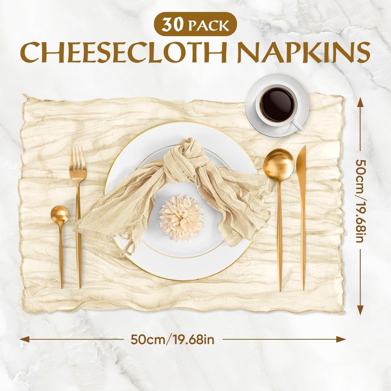 - ✨MULTIPLE USES: muslin napkins gauze fabric 50 x 50 cm can be used in many places. You can use it for a romantic wedding, a cheerful party with friends, a warm family dinner or all kinds of holiday fancy dress. Fabric napkins linen will not unfold during shipping. Cloth napkins stay intact when you receive it.