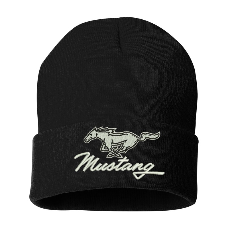 Mustang Car Beanie Hat Embroidered Vintage Cap (Black)