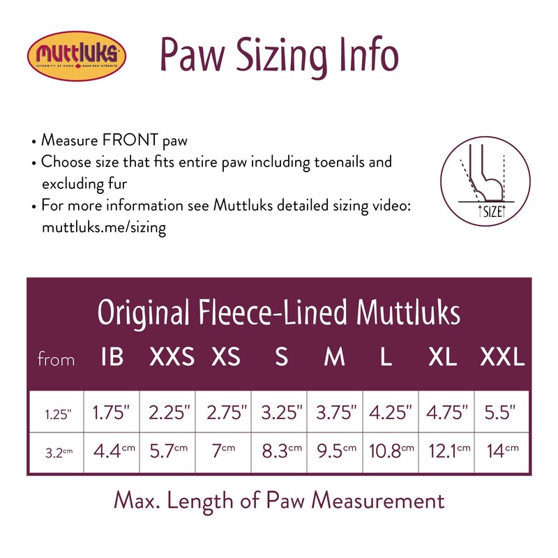 - WINTER ADVENTURE BOOTS: The original dog boot, since 1994; Original Fleece-Lined Muttluks dog boots provide winter warmth and a “pawsitive” winter experience for you and your dog; Protects dog's paws from winter hazards such as ice, cold, salt or snow; Ideal for extreme cold and winter weather conditions