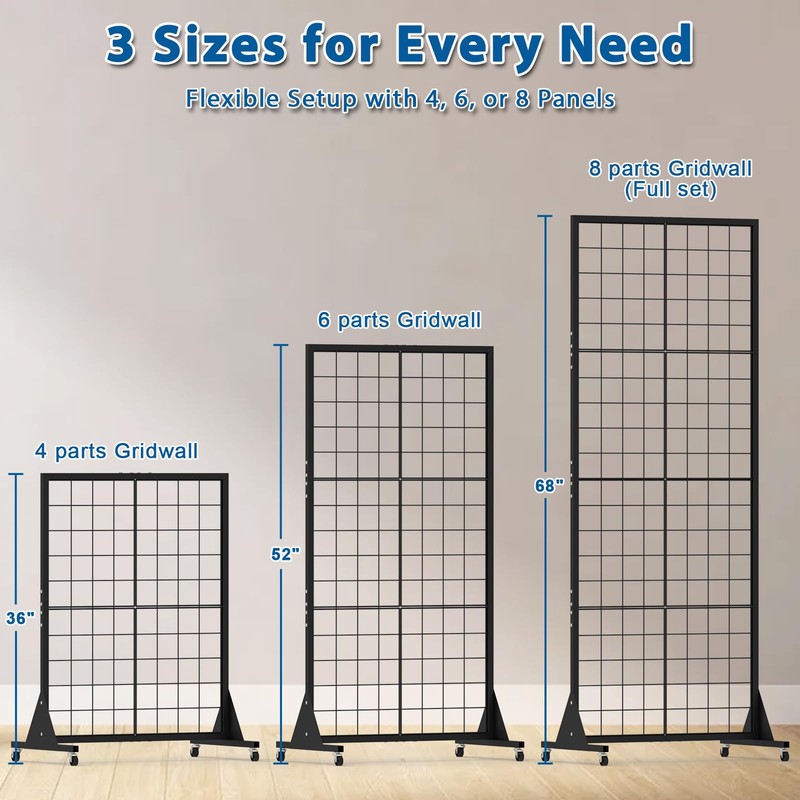 - 【Detachable Grid Panels】Includes 8 detachable grid wall panels made of durable wire construction. You can reassemble them into 3 different display rack sizes, or detach for flat, compact storage. Create your custom grid panel layout with ease for any vendor event or shop display.