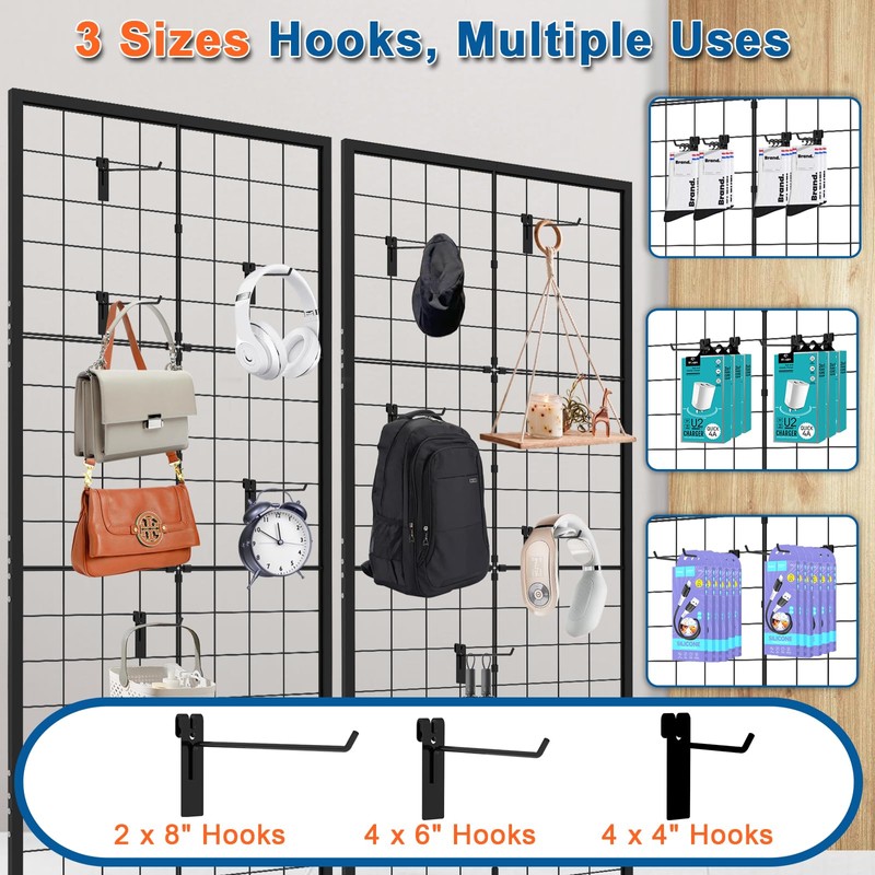 - 【Bonus Hooks Included】Comes with a set of display hooks, making it easy to hang products, decorations, and accessories on your wall grid panel or gridwall setup. Perfect for enhancing grid wall functionality in both commercial and personal spaces.