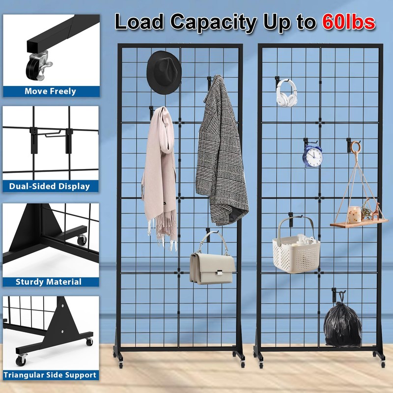 - 【Heavy-Duty Floorstanding Panel】This grid wall panel display stand features a large display surface measuring 2.1ft x 5.6ft (65cm x 172cm / 25.6" x 67.7"). Made from durable, high-quality wire with a rust-resistant coating, it ensures long-lasting strength and stability for various display needs.